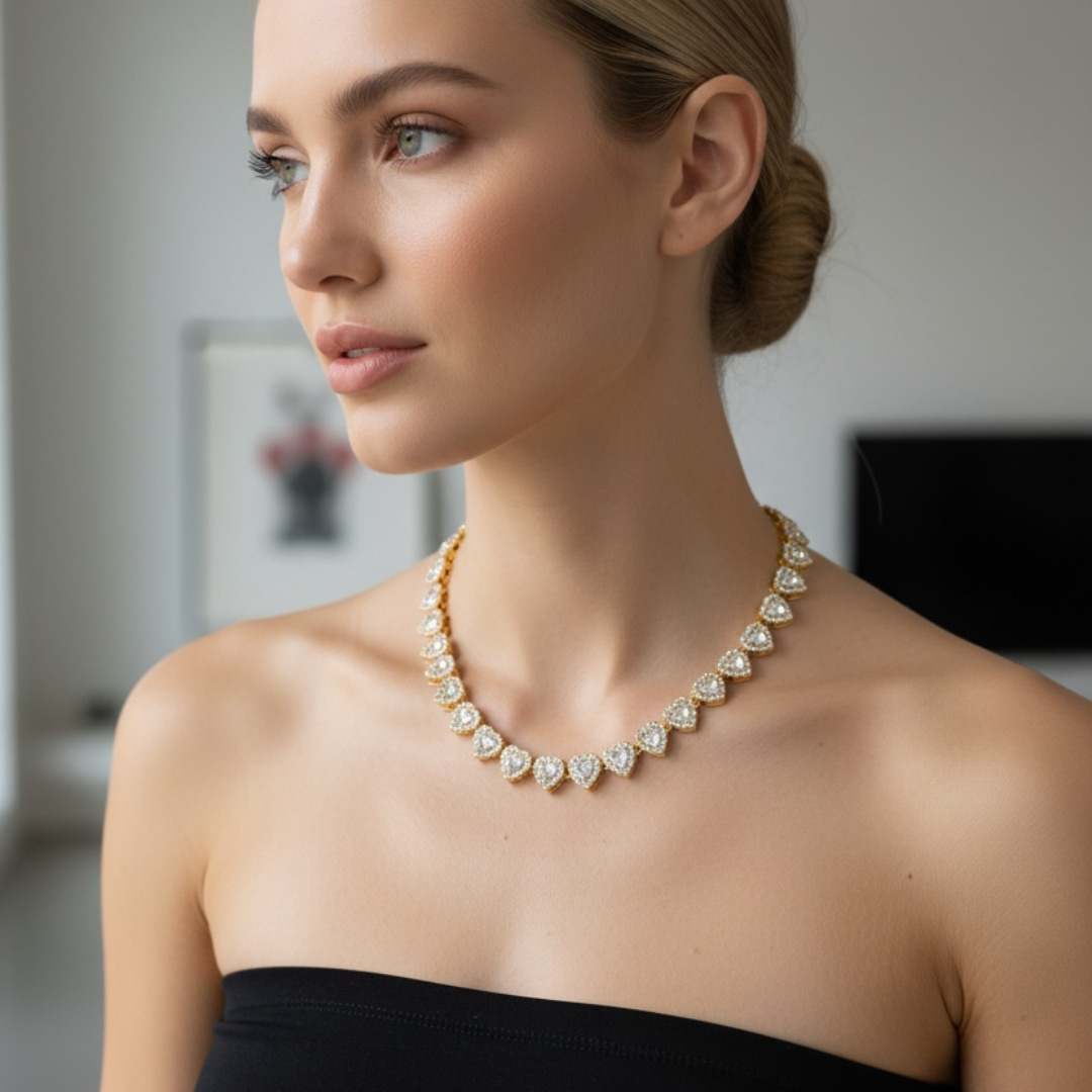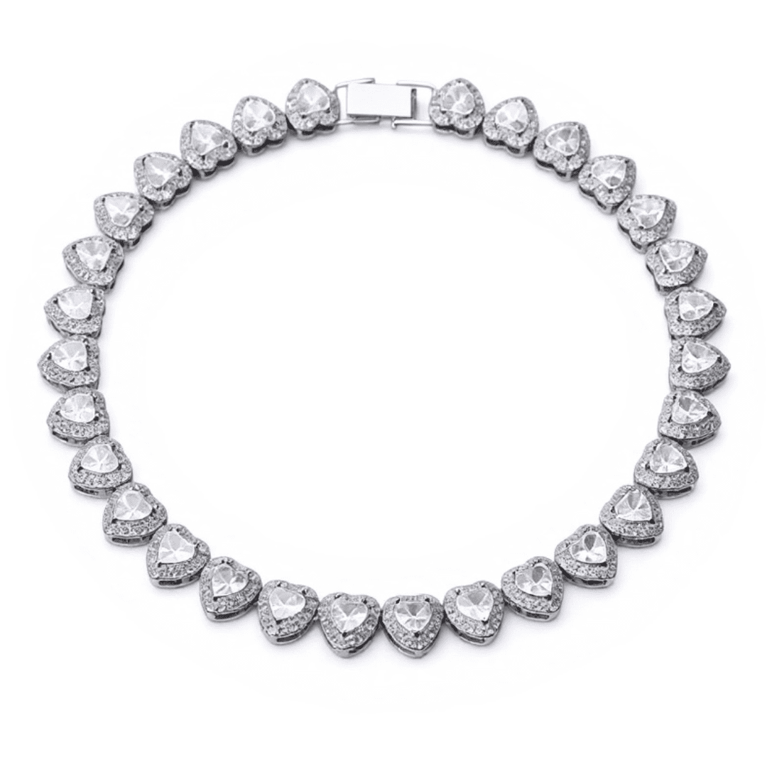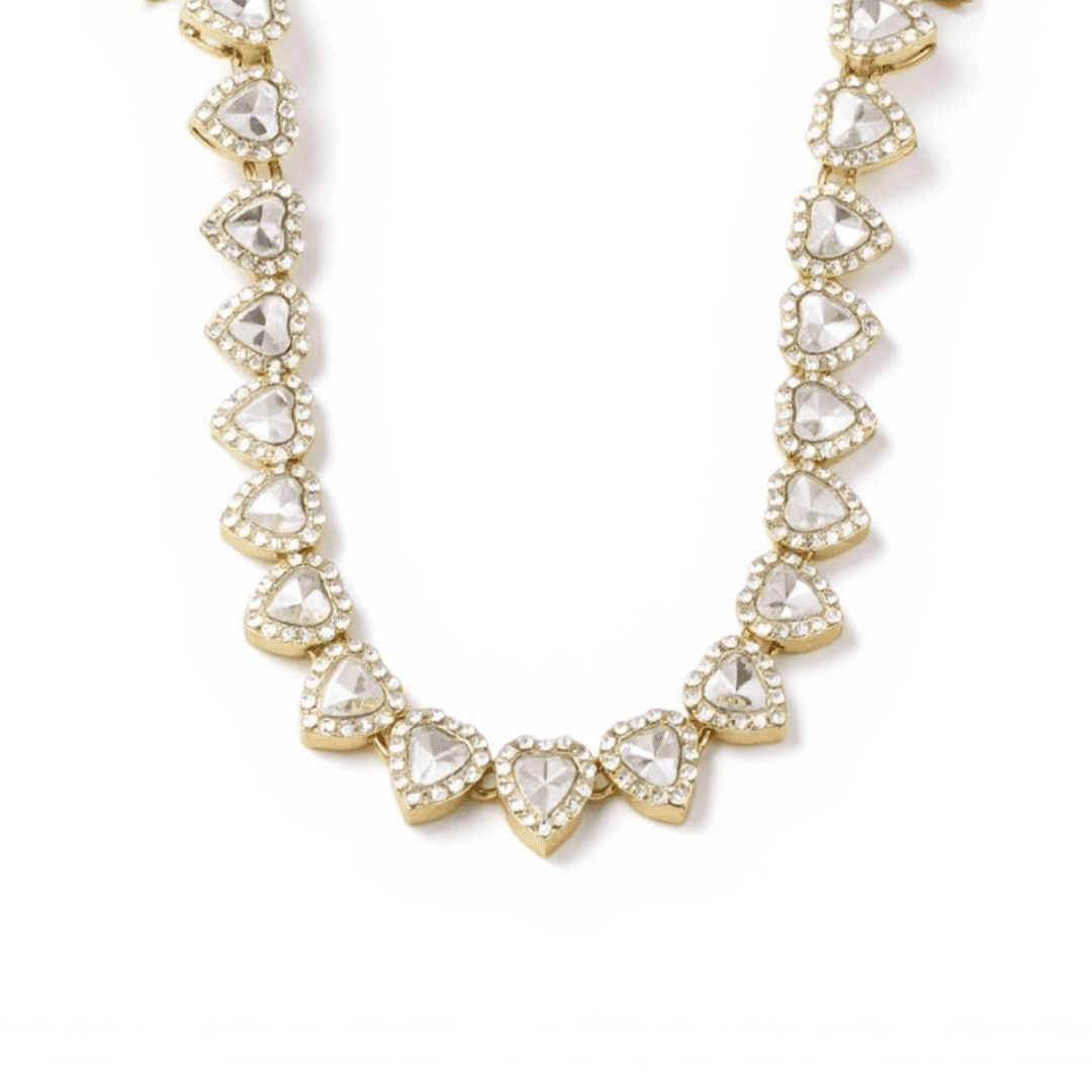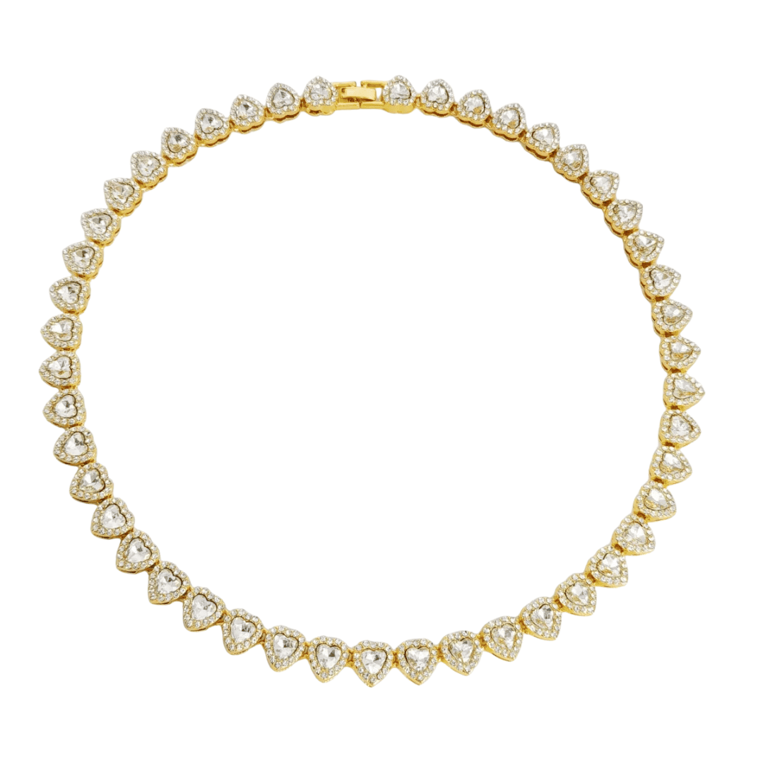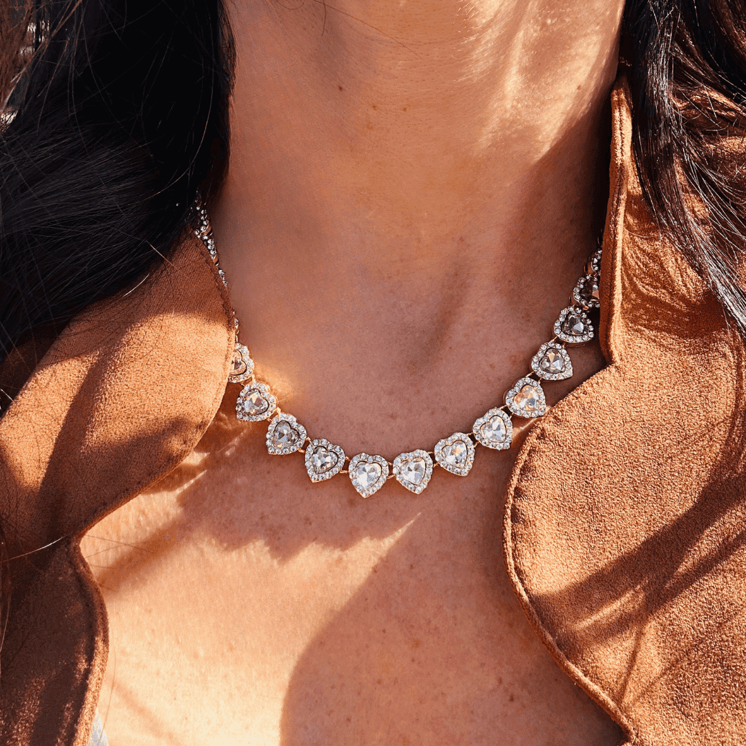Laissez-vous séduire par l’éclat irrésistible du collier délicat Yaelle composé d’une succession de cœurs scintillants, symbole d’amour et de féminité. Chaque cœur est serti d’un cristal lumineux, finement entouré de micro-pierres pour un rendu chic et raffiné.